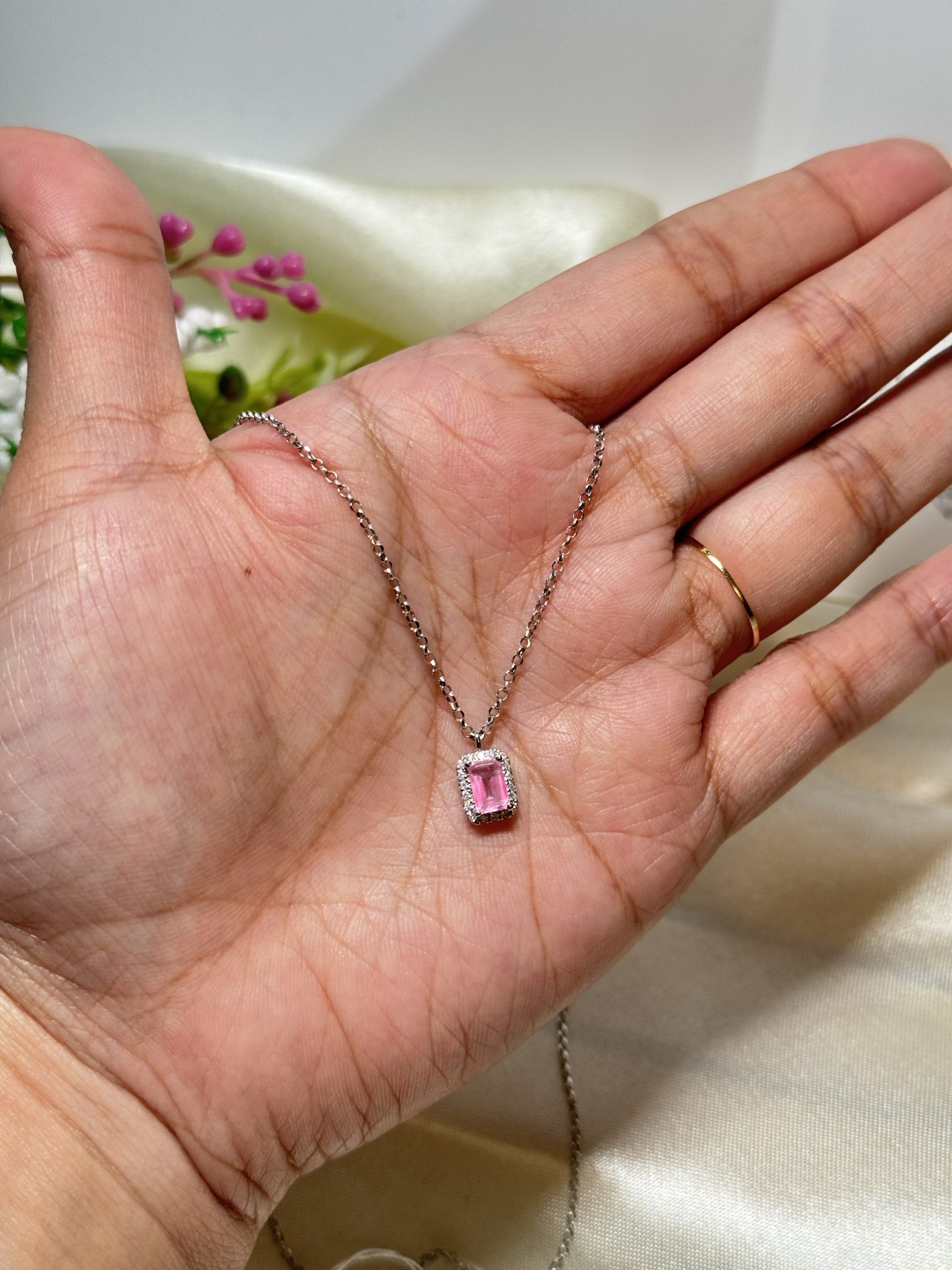With 0.70ct Non-heated Pink Sapphire and 0.12ct surround natural diamond pendant