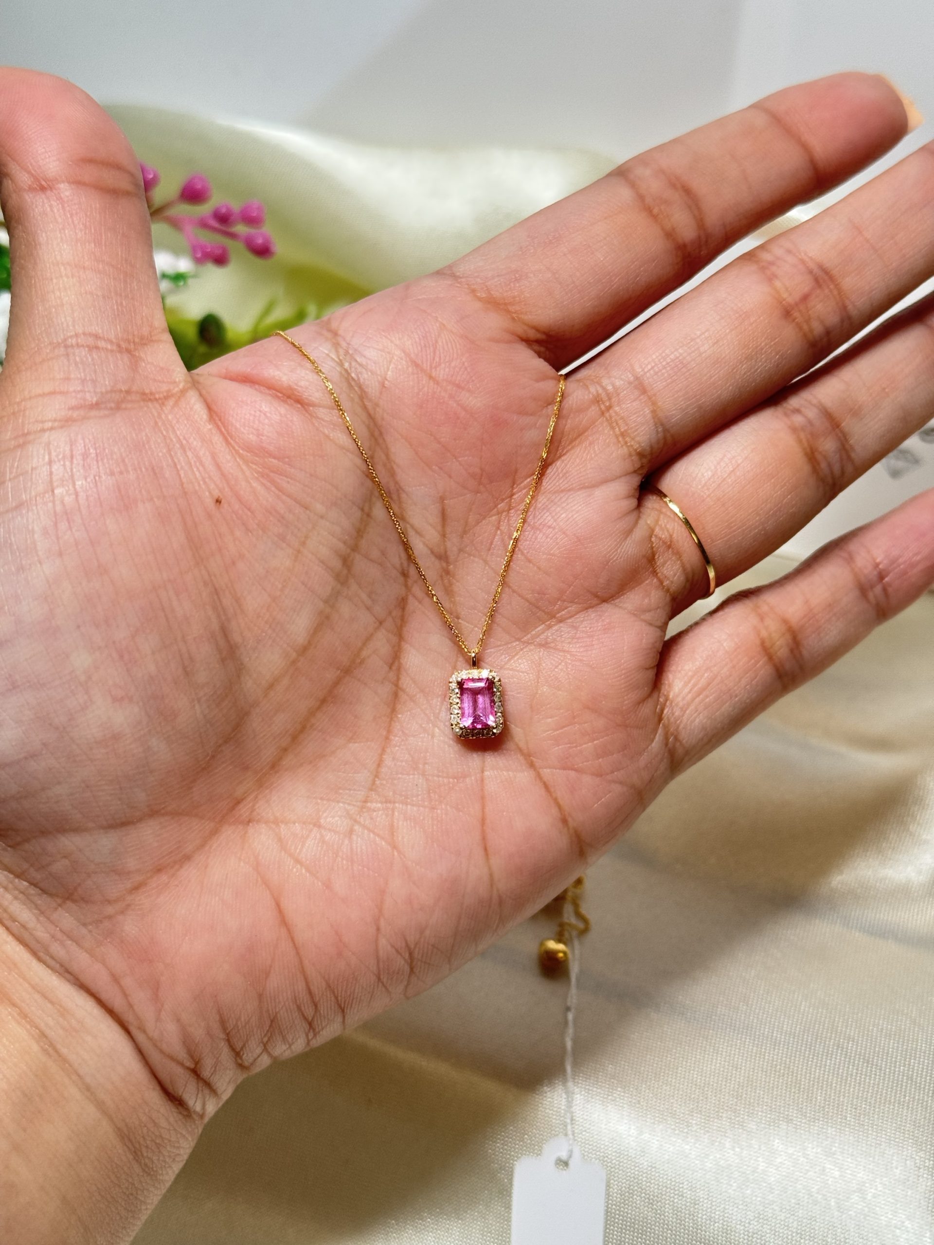 With 0.70ct Non-heated Pink Sapphire and 0.12ct surround natural diamond pendant