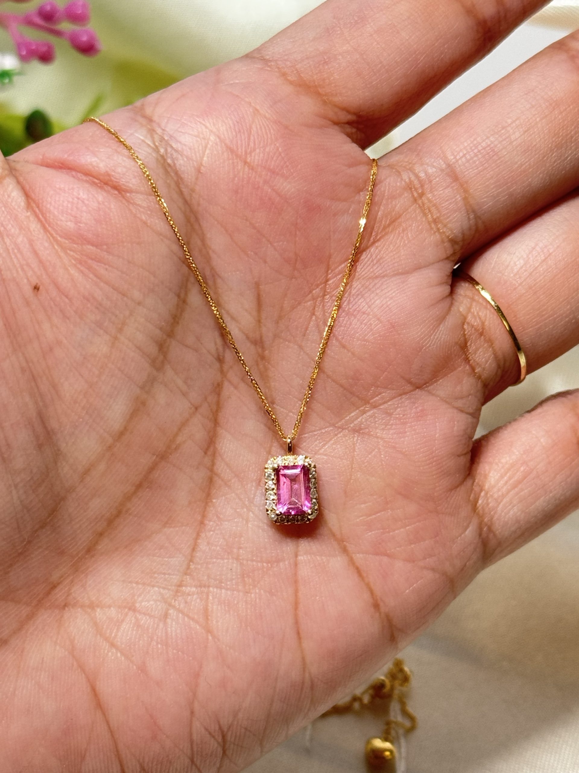 18k Yellow Japan Gold Pendant With 0.70ct Non-heated Pink Sapphire and 0.12ct Halo natural diamond pendant