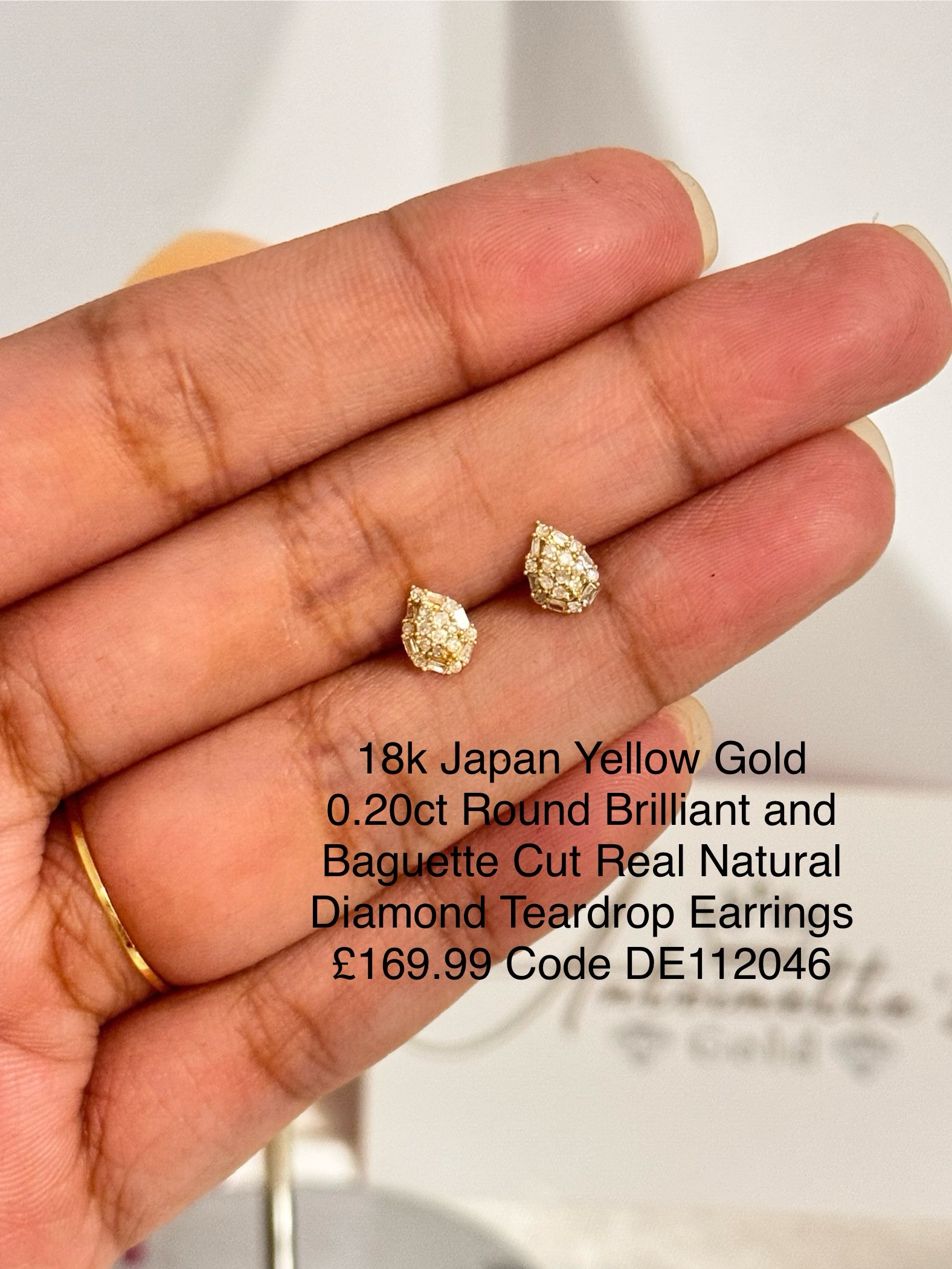 ‎💎0.20ct Round Brilliant and Baguette Cut Real Natural Diamond Teardrop Earrings