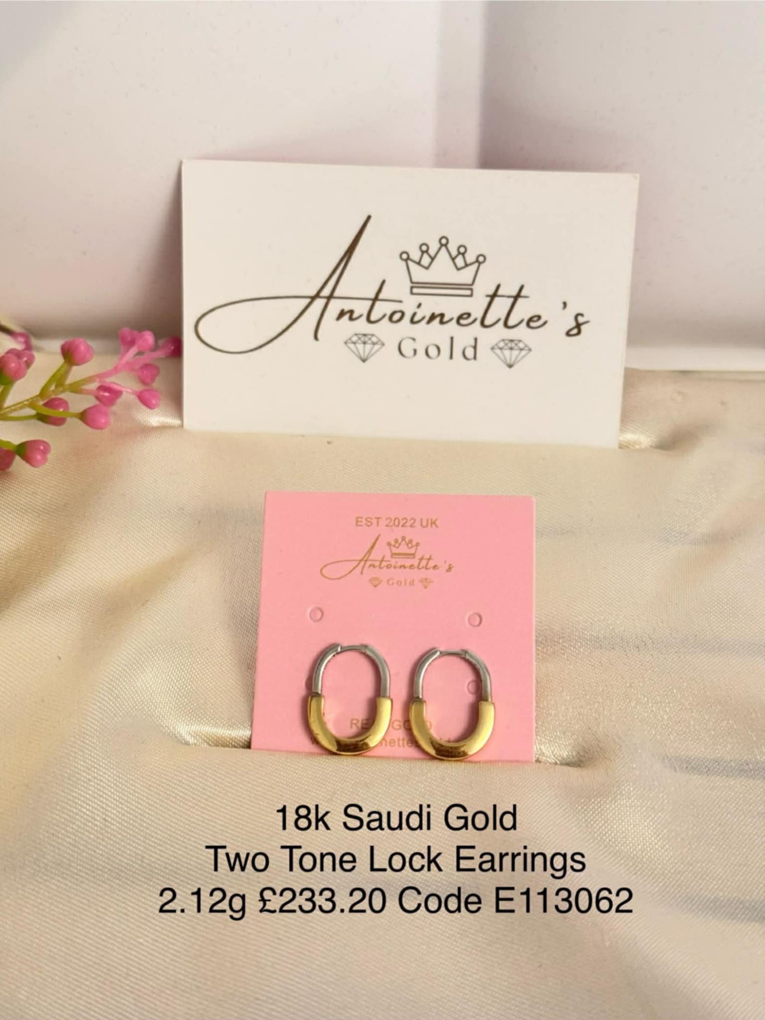 E113062 Two Tone Lock EarringsE113062 Two Tone Lock Earrings