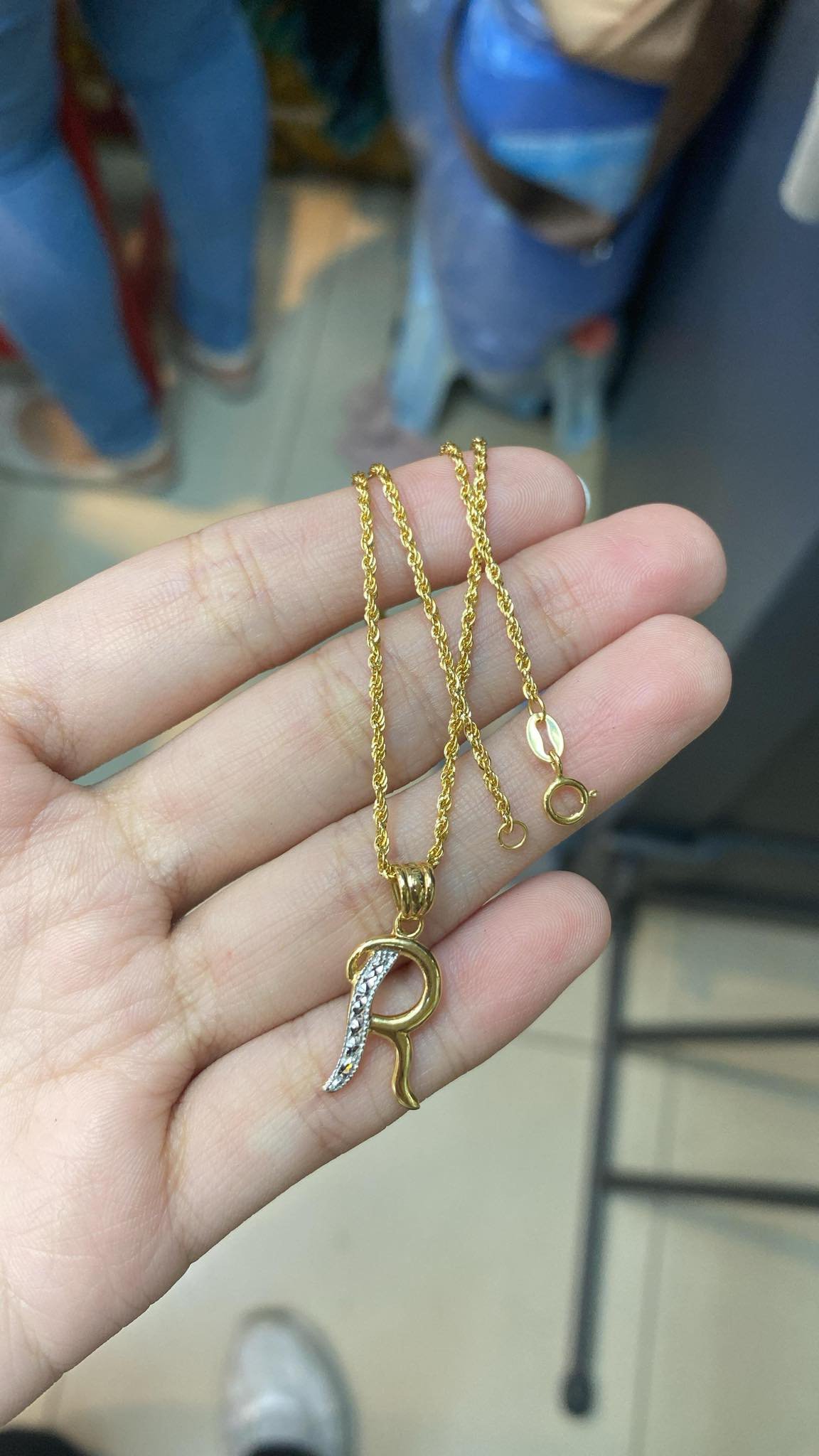 18″ Rope chain w/ Letter R pendant 2.3g